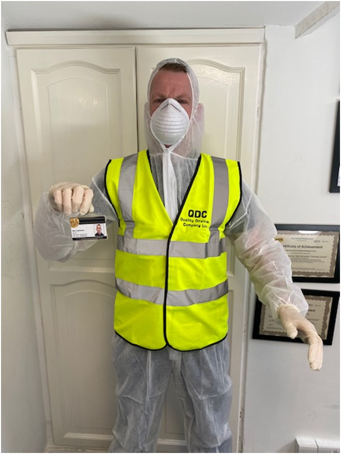 QDC have PPE in order to safely carryout any works including a full disposable suit, face masks and gloves and we have sanitiser!